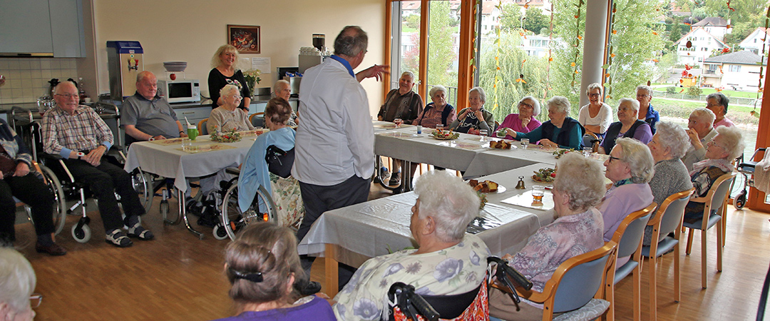Nach dem Rundblick in die Umgebung laden wir Sie ein, auch einen Blick in unser Alterszentrum zu werfen. Entdecken Sie Orte des Alltags und des Wohlbefindens – Räume zum Begegnen, Verweilen und Lachen.
